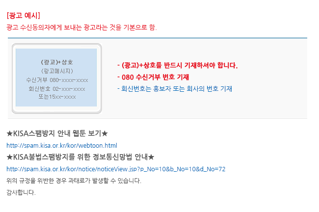 4. Àü¼ÛµÇ´Â ¸Þ½ÃÁö¿¡´Â (±¤°í)+¾÷ü+¸Þ½ÃÁö³»¿ë+¹«·á¼ö½Å°ÅºÎ+080¹øÈ£¸¦ ¼ø¼´ë·Î ÀÔ·ÂÇÕ´Ï´Ù.
